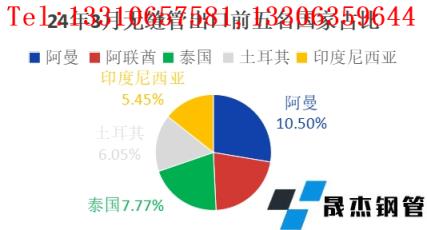 分國別來看,3月份我國無縫管的主要流向國家為阿曼、阿聯酋、泰國、土耳其、印度尼西亞,占本月出口總量的比重分別為10.98%、8.58%、8.12%、6.33%、5.69%,上述國家出口總量占本月總出口量的39.7%。由此可見,本月無縫管出口國別流向已趨于明顯,2024年國別流向或更加明顯,亞洲、非洲、歐洲國家成為我國無縫管出口的主要根據地,中東地區國家需求仍保持韌性,美洲的需求有所下滑。