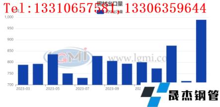 圖32023年—2024年我國厚壁鋼管出口走勢圖