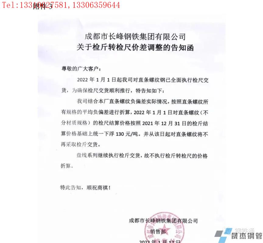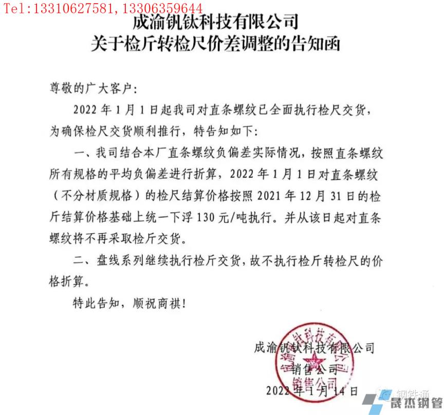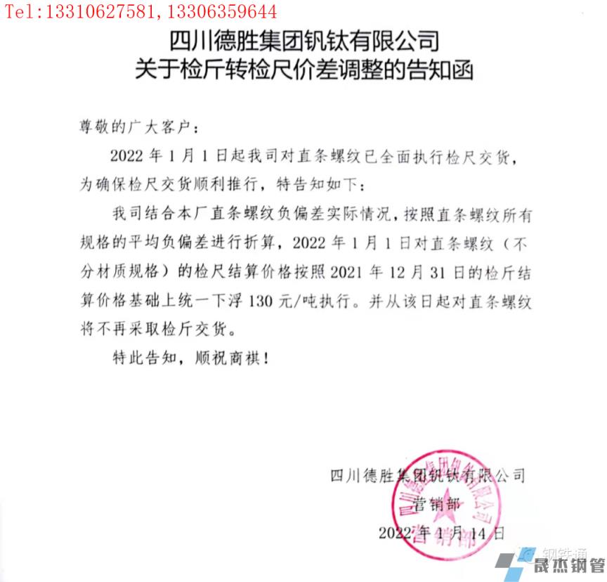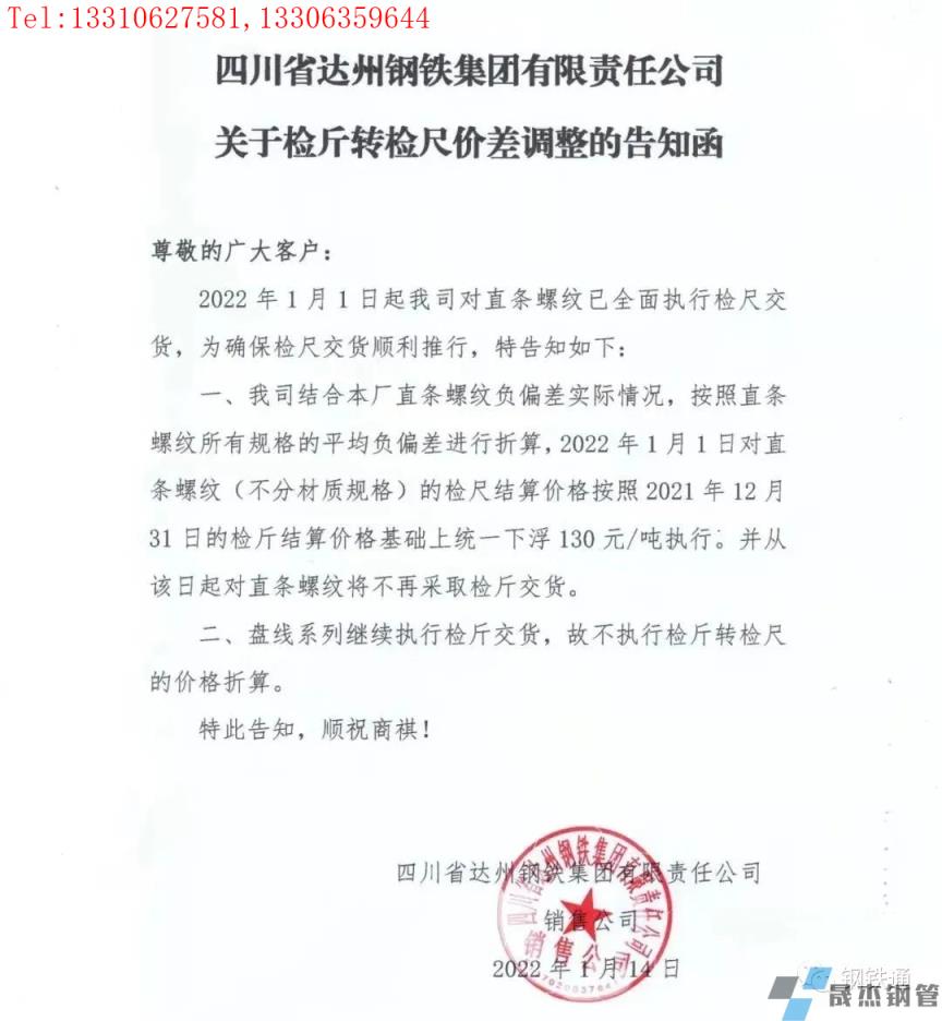 免責聲明:本網站(山東聊城晟杰無縫鋼管廠www.vsocial.cn)刊載的“四川多家鋼企發布檢斤轉檢尺價差調整通知”等均源于網絡,版權歸原作者所有,且僅代表原作者觀點,本文所載信息僅供參考。轉載僅為學習與交流之目的,如無意中侵犯您的合法權益,請及時聯系刪除。本網站刊登此篇文章并不意味著本站贊同其觀點或證實其內容的真實性,我們不對其科學性、嚴肅性等作任何形式的保證。如果侵犯了您的版權,請盡快聯系我們予以撤銷,謝謝合作!