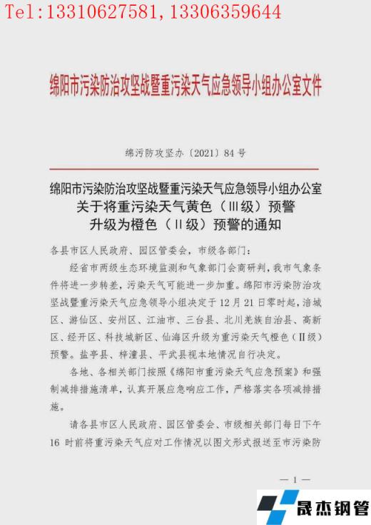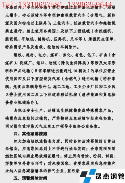 1.鋼鐵企業。嚴格按照《重污染天氣應急減排清單》中“橙色預警減排措施”執行。