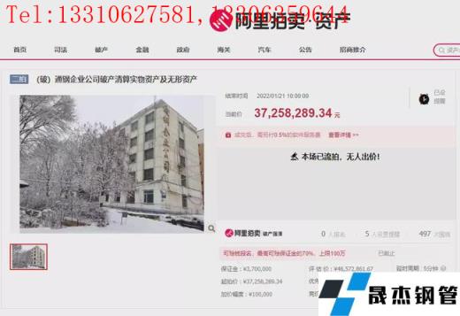 近日,阿里拍賣平臺(tái)發(fā)布通鋼企業(yè)名下房屋建筑物、構(gòu)筑物及其他輔助設(shè)施等資產(chǎn)的拍賣信息。本次競(jìng)拍時(shí)間為1月20日是繼1月1日后的第二次拍賣,起拍價(jià)格也由之前的4657.28萬(wàn)元降至3725.82萬(wàn)元。