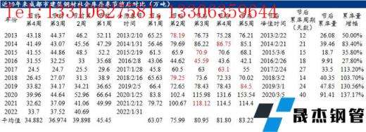 回顧近10年來(lái)成都建筑鋼材社會(huì)庫(kù)存春節(jié)前后對(duì)比,成都建筑鋼材庫(kù)存平均累庫(kù)量在41.17萬(wàn)噸左右,累庫(kù)幅度在90.88%,2020年累庫(kù)較為明顯。2022年春節(jié)放假較早,川內(nèi)短流程無(wú)縫鋼管廠停產(chǎn)放假時(shí)間提前,加之北方資源到貨同比減少,節(jié)前成都建筑鋼材社會(huì)庫(kù)存累積緩慢。近10年來(lái)春節(jié)后成都建筑鋼材庫(kù)存峰值均出現(xiàn)第3-4周,累庫(kù)周期約21天。節(jié)后庫(kù)存峰值最高為2020年近158.05萬(wàn)噸,其次是2021年的118.12萬(wàn)噸。從川內(nèi)無(wú)縫鋼管廠停產(chǎn)檢修計(jì)劃,以及省外無(wú)縫鋼管廠資源到貨情況來(lái)看,預(yù)計(jì)節(jié)后四川建材庫(kù)存累積周期或較去年縮短,且?guī)齑娣逯狄嗝黠@下降。
