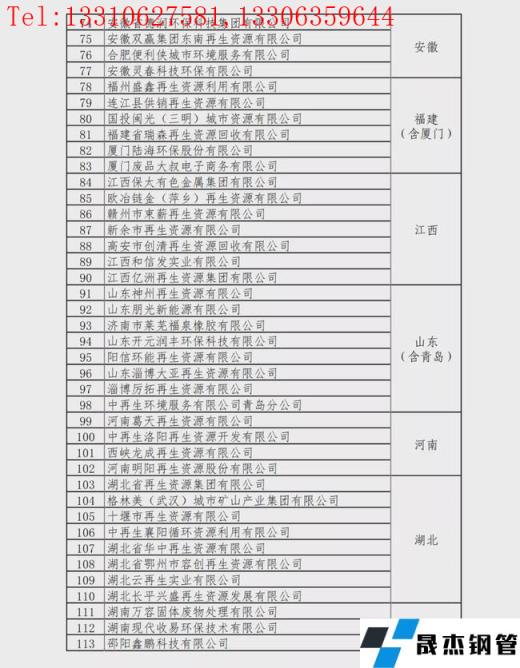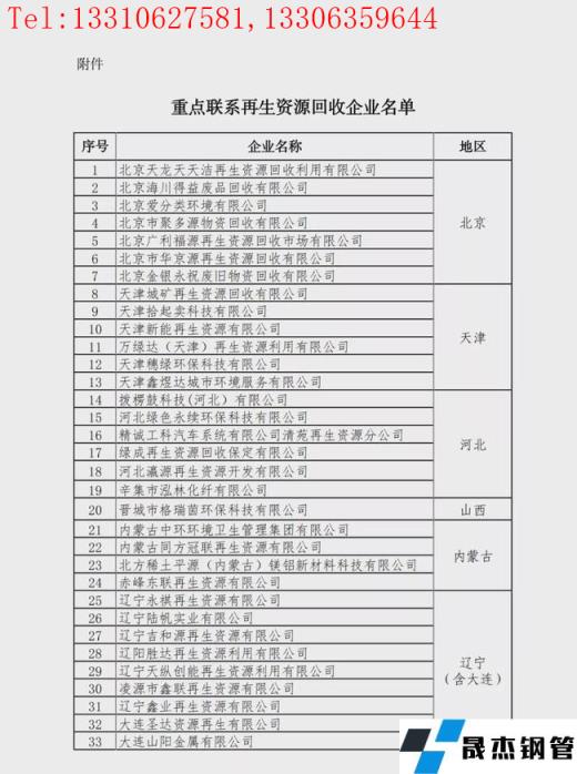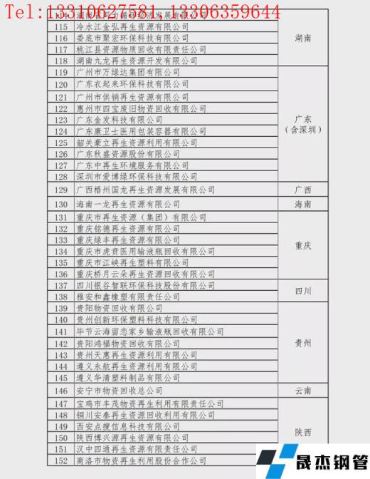 重點聯系再生資源回收企業名單: