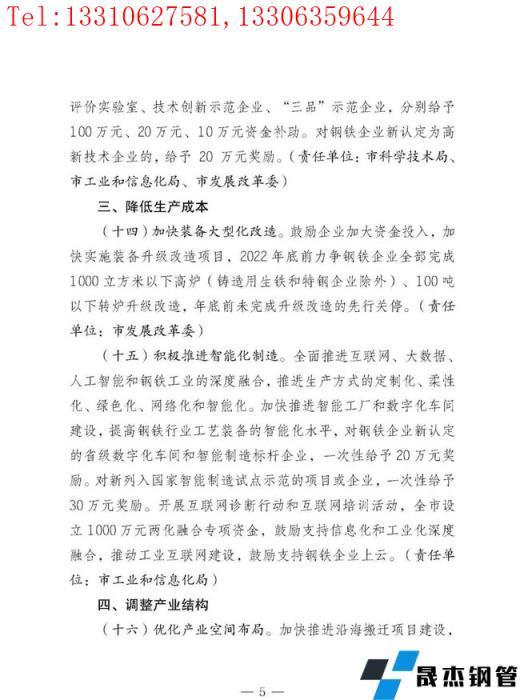 免責(zé)聲明:本網(wǎng)站(山東聊城晟杰無(wú)縫鋼管廠www.vsocial.cn)刊載的“鼓勵(lì)重組、加快搬遷、未改關(guān)停唐山市打造精品鋼鐵萬(wàn)億級(jí)產(chǎn)業(yè)!”等均源于網(wǎng)絡(luò),版權(quán)歸原作者所有,且僅代表原作者觀點(diǎn),本文所載信息僅供參考。轉(zhuǎn)載僅為學(xué)習(xí)與交流之目的,如無(wú)意中侵犯您的合法權(quán)益,請(qǐng)及時(shí)聯(lián)系刪除。本網(wǎng)站刊登此篇文章并不意味著本站贊同其觀點(diǎn)或證實(shí)其內(nèi)容的真實(shí)性,我們不對(duì)其科學(xué)性、嚴(yán)肅性等作任何形式的保證。如果侵犯了您的版權(quán),請(qǐng)盡快聯(lián)系我們予以撤銷(xiāo),謝謝合作!