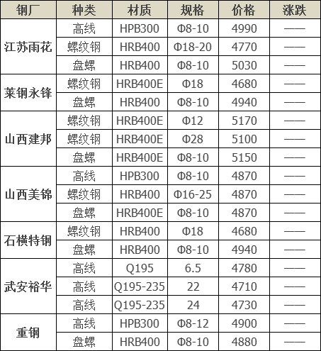 鋼廠調價今日建材共7家鋼廠調價發布,其中: