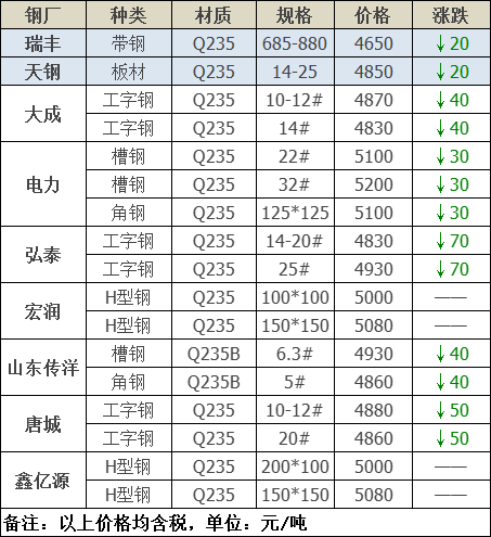 1月17日玉溪玉昆部分上調50元:鋼筋切頭3500;特級重廢,工字鋼(規格要求40*50)3250-3300生鐵,重廢3200~3250;中廢3150~3200純一級剪料3200~3250純二級剪料(規格要求2mm厚,長寬20~30)3100~3150不含稅。