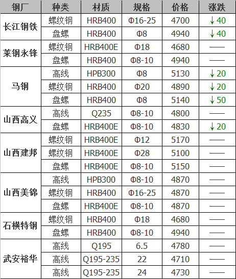 鋼廠調價今日建材共9家鋼廠調價發布,其中: