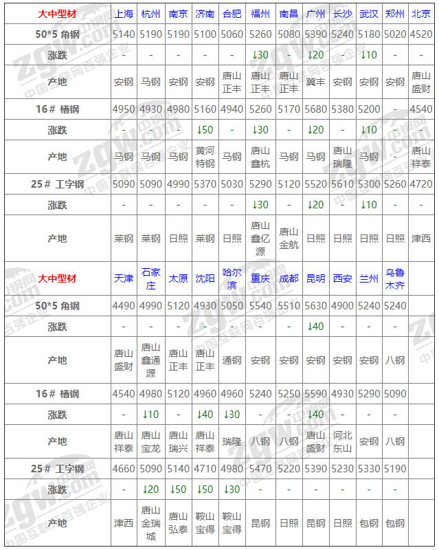 全國23個主要市場50*5 角鋼平均價格5131元/噸,較上個交易日下調4元/噸。
