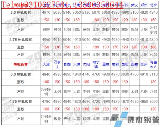全國24個主要市場3.0 熱軋板卷平均價格4957元/噸,較上個交易日上調(diào)42元/噸。