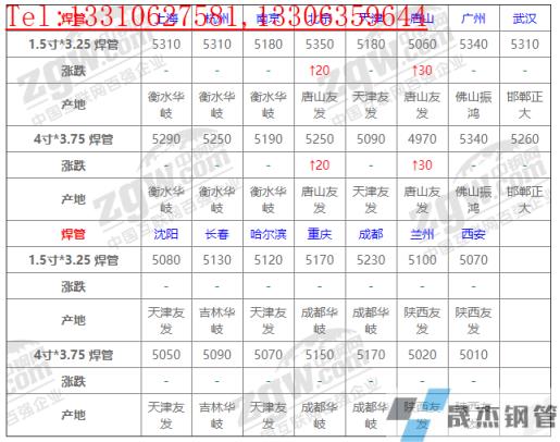 全國15個主要市場1.5寸*3.25 焊管平均價格5196元/噸,較上個交易日上調(diào)3元/噸。