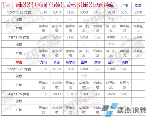 全國(guó)15個(gè)主要市場(chǎng)1.5寸*3.25 焊管平均價(jià)格5199元/噸,較上個(gè)交易日上調(diào)3元/噸。