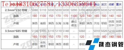 全國12個主要市場2.5mm*232 帶鋼平均價格5061元/噸,較上個交易日上調(diào)66元/噸。
