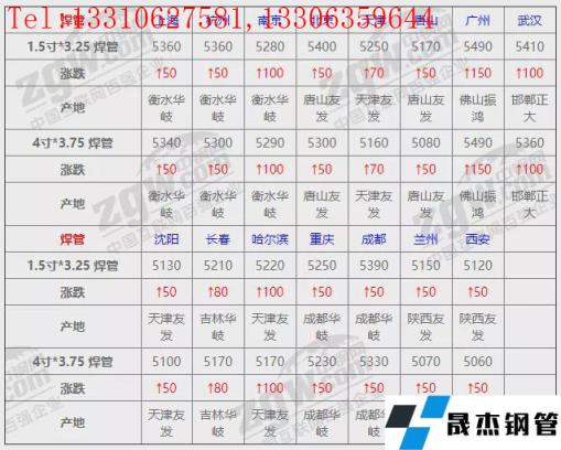 全國15個主要市場4寸*3.75 焊管平均價格5230元/噸,較上個交易日上調(diào)70元/噸。