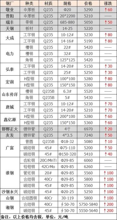 上調(diào)21家,占比91.3%,調(diào)價(jià)幅度30-210元/噸;