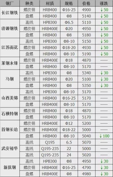 下調(diào)11家,占比55%,調(diào)價(jià)幅度20-100元/噸,