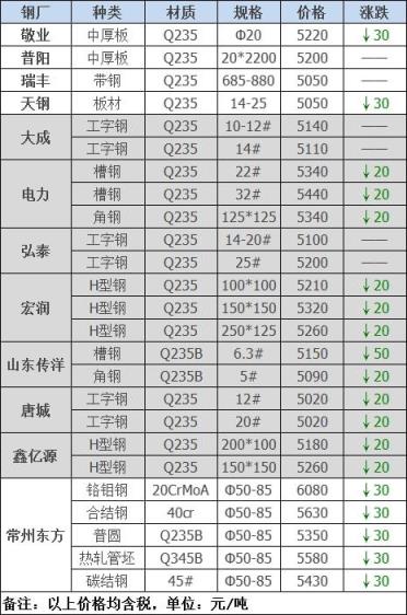 下調(diào)7家,占比63.6%,調(diào)價幅度10-40元/噸;