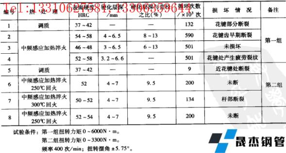 3.2 半軸的感應淬火3.2.1 制造工藝路線下料→鍛造成形→調質或正火→銑端面、打中心孔→矯直→機械加工→清洗→中頻感應加熱淬火、回火或自回火→矯直→精加工→成品。鍛坯熱處理的目的,除考慮機械加工的要求外,還要為感應加熱淬火作組織準備。一般采用調質處理,有條件的工廠最好采用鍛熱淬火加高溫回火,這對以后的加工和感應加熱淬火都極為有利。此外,應高度重視冷、熱加工協調對熱處理質量的影響。如汽車半軸感應加熱定位,應根據加工工藝特性進行分析,做到冷、熱加工、檢驗定位基準統一。半軸法蘭盤端中心孔深度與法蘭內端面的相對位置要準確,以保證法蘭內端面與矩形感應器的距離,此距離過大或過小都不能保證感應加熱淬火熱處理質量,將導致半軸工作時早期損壞。3.2.2熱處理工藝(1)半軸感應加熱淬火后的力學性能,半軸經感應加熱淬火后,屈服強度與疲勞極限均有提高,尤以疲勞極限的提高最為顯著(見表4 及表5)。▼表4半軸靜扭強度對比試驗結果