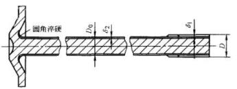 ▲圖3半軸工藝淬火硬化層與強度分布a)太淺b)合適c)太深桿部:硬化層深度應達到桿部直徑的15%(δ2=15%D0)。法蘭根部:要求法蘭盤與桿部連接的過渡圓角淬硬。在實際生產中,圓角處硬化區域的最小直徑應比半軸桿部直徑大25%。這些要求是為了保證半軸的靜強度和疲勞強度。花鍵與桿部的淬硬層深度對靜強度影響較大,法蘭圓角淬硬對疲勞極限影響較大。每種表面淬火半軸都有最佳的硬化層深,應考慮到硬化層深對表層殘留壓應力的影響。表6 列出了直徑為50mm的帶法蘭半軸感應加熱淬火后花鍵尾根部位的殘留壓應力。通常,感應加熱淬火硬化層深度可以根據半軸桿部直徑的大小和產品設計結構形狀來確定。對輕型載重車和小轎車的法蘭盤式半軸(桿部直徑在50mm以下)淬硬層深度可按下列要求確定(參閱圖4)。