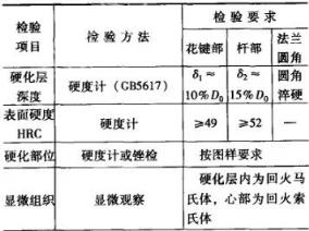 ▲圖820CrMnTi半軸滲碳熱處理工藝4 半軸的質量檢驗常用合金結構鋼半軸調質的質量檢驗見表12。半軸表面感應淬火的質量檢驗見表13。▼表12常用合金結構鋼半軸調質的質量檢驗
