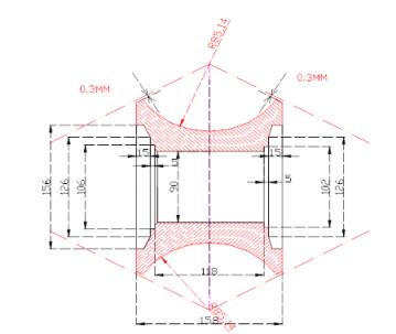 6.3.7.2 孔型設(shè)計(jì):考慮到一定孔型的軋輥被大量制造,則他們的軋輥孔型用尺寸D,α或者a和b明確定義