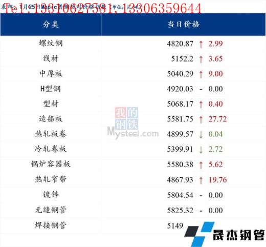 1月25日Myspic普鋼絕對價格指數變化:綜合指數5041.97,上漲3.92;螺紋鋼指數4820.87,上漲2.99;線材指數5152.2,上漲3.65;熱軋板卷指數4899.57,下跌0.04;冷軋板卷指數5399.91,下跌2.72;中厚板指數5040.29,上漲9.0。