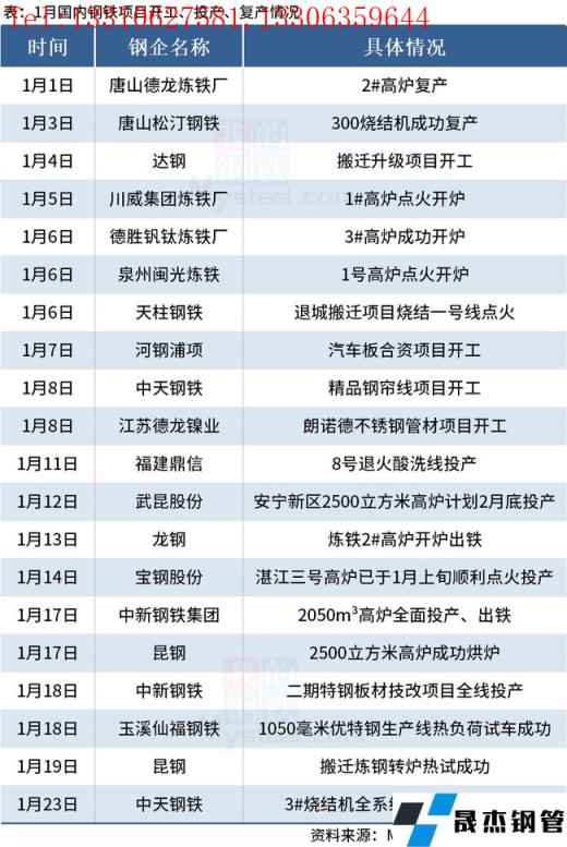 免責聲明:本網站(山東聊城晟杰無縫鋼管廠www.vsocial.cn)刊載的“1月國內20個鋼鐵項目開工、投產和復產”等均源于網絡,版權歸原作者所有,且僅代表原作者觀點,本文所載信息僅供參考。轉載僅為學習與交流之目的,如無意中侵犯您的合法權益,請及時聯系刪除。本網站刊登此篇文章并不意味著本站贊同其觀點或證實其內容的真實性,我們不對其科學性、嚴肅性等作任何形式的保證。如果侵犯了您的版權,請盡快聯系我們予以撤銷,謝謝合作!