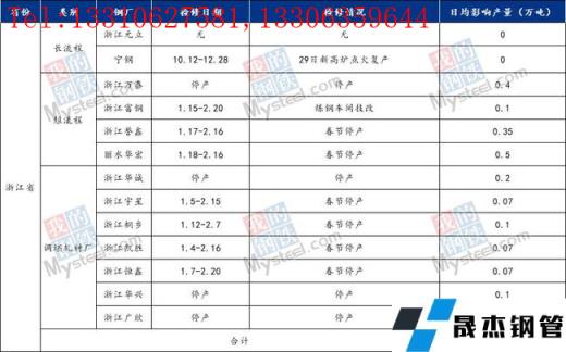 據(jù)調(diào)研,截至1月28日,浙江省內(nèi)無縫鋼管廠家已處于春節(jié)停產(chǎn)狀態(tài),日均影響產(chǎn)量較上周2.1萬噸相比維持不變。長流程無縫鋼管廠家浙江元立螺紋鋼生產(chǎn)目前正常;寧鋼1座2500立方高爐已點火復(fù)產(chǎn)。短流程無縫鋼管廠家浙江萬泰、浙江富鋼、浙江譽(yù)鑫、麗水華宏均受春節(jié)影響已經(jīng)處于停產(chǎn)狀態(tài),復(fù)產(chǎn)時間預(yù)計2月中旬左右,日均影響產(chǎn)量1.35萬噸;調(diào)坯軋材廠臨近春節(jié)的緣故,目前也皆處于停產(chǎn)狀態(tài),日均影響產(chǎn)量0.75萬噸,復(fù)產(chǎn)時間預(yù)計2月中旬左右。具體復(fù)產(chǎn)時間以無縫鋼管廠家公布時間為準(zhǔn)。綜合來看,浙江省內(nèi)無縫鋼管廠家總計日均影響產(chǎn)量2.1萬噸左右,較上周維持不變。具體檢修情況詳見下圖: