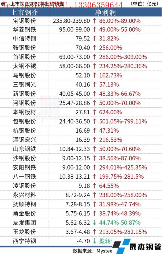免責(zé)聲明:本網(wǎng)站(山東聊城晟杰無縫鋼管廠www.vsocial.cn)刊載的“24家上市鋼企業(yè)績飄紅,9家實現(xiàn)凈利潤翻倍增長”等均源于網(wǎng)絡(luò),版權(quán)歸原作者所有,且僅代表原作者觀點(diǎn),本文所載信息僅供參考。轉(zhuǎn)載僅為學(xué)習(xí)與交流之目的,如無意中侵犯您的合法權(quán)益,請及時聯(lián)系刪除。本網(wǎng)站刊登此篇文章并不意味著本站贊同其觀點(diǎn)或證實其內(nèi)容的真實性,我們不對其科學(xué)性、嚴(yán)肅性等作任何形式的保證。如果侵犯了您的版權(quán),請盡快聯(lián)系我們予以撤銷,謝謝合作!