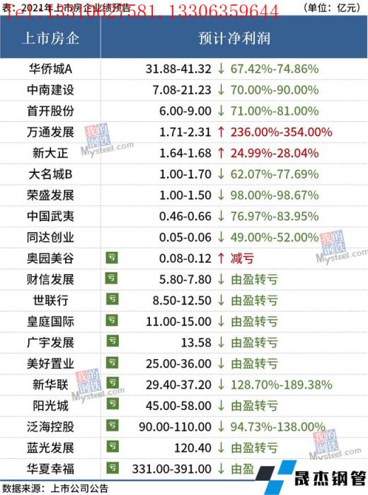 免責聲明:本網站(山東聊城晟杰無縫鋼管廠www.vsocial.cn)刊載的“20家房企發布2021年業績預告,過半出現虧損”等均源于網絡,版權歸原作者所有,且僅代表原作者觀點,本文所載信息僅供參考。轉載僅為學習與交流之目的,如無意中侵犯您的合法權益,請及時聯系刪除。本網站刊登此篇文章并不意味著本站贊同其觀點或證實其內容的真實性,我們不對其科學性、嚴肅性等作任何形式的保證。如果侵犯了您的版權,請盡快聯系我們予以撤銷,謝謝合作!