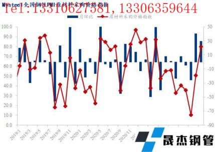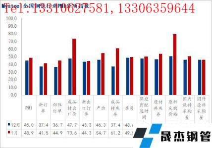 從相關(guān)指數(shù)來看,本月成品材出廠價指數(shù)大幅回升25.9個百分點(diǎn)至73.6,無縫厚壁鋼管廠家成品材庫存指數(shù)大幅回升23.8個百分點(diǎn)至61.2,同時原材料采購價指數(shù)大幅回升29.2個百分點(diǎn)至79.7,國內(nèi)原材料采購量指數(shù)回升4.8個百分點(diǎn)至50.9,國外原材料采購量指數(shù)持平為43.1。