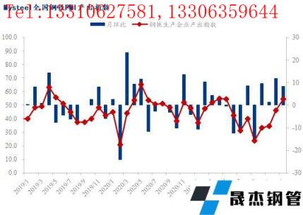 1月份,全國鋼鐵行業(yè)無縫厚壁鋼管廠家產(chǎn)出指數(shù)較12月份回升8.4個百分點(diǎn),終值54.7。具體來看,進(jìn)入1月份,各地對長流程無縫厚壁鋼管廠家限產(chǎn)政策明顯放松,各地高爐陸續(xù)復(fù)產(chǎn),粗鋼產(chǎn)量明顯回升。至后半月,隨著春節(jié)假期臨近,短流程無縫厚壁鋼管廠家陸續(xù)放假,無縫厚壁鋼管廠家產(chǎn)量小幅回落。整體而言,1月份國內(nèi)鋼鐵產(chǎn)出明顯回升。
