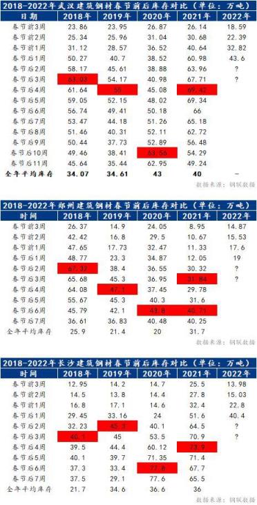 小編匯總近5年春節(jié)后7周中南區(qū)域建筑厚壁無縫鋼管庫存變化及庫存峰值時間節(jié)點。具體情況如下表所示:
