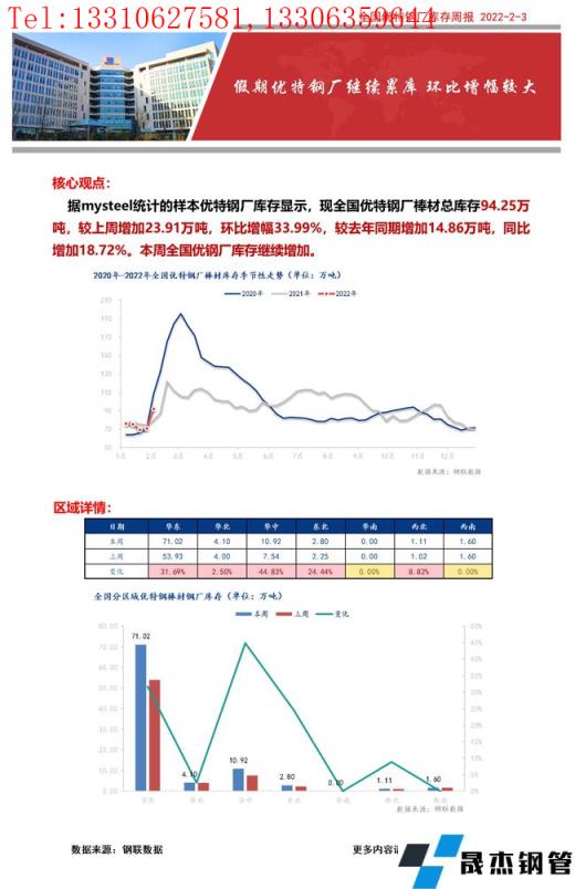 核心觀點:據mysteel統計的樣本優特無縫厚壁鋼管廠家庫存顯示,現全國優特無縫厚壁鋼管廠家棒材總庫存94.25萬噸,較上周增加23.91萬噸,環比增幅33.99%,較去年同期增加14.86萬噸,同比增加18.72%。本周全國優無縫厚壁鋼管廠家庫存繼續增加。