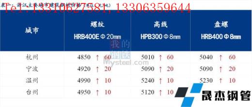 從浙江省今日價(jià)格來看,省內(nèi)價(jià)格均有上漲。其中杭州市場(chǎng)建筑厚壁無縫鋼管價(jià)格統(tǒng)漲60元/噸;寧波市場(chǎng)建筑厚壁無縫鋼管價(jià)格統(tǒng)漲20元/噸;溫州、臺(tái)州市場(chǎng)建筑厚壁無縫鋼管價(jià)格統(tǒng)漲10元/噸。