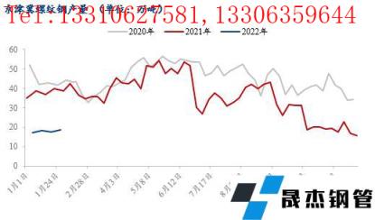 從上圖可以看出,1月份京津冀建材無(wú)縫厚壁鋼管廠家的螺紋鋼產(chǎn)量持續(xù)在低位徘徊,截至1月底,螺紋鋼周產(chǎn)量降至18.6萬(wàn)噸,產(chǎn)能利用率僅為19.87%,依然是敬業(yè)、承鋼、樂(lè)鋼、鑫達(dá)等無(wú)縫厚壁鋼管廠家的螺紋鋼產(chǎn)線在產(chǎn),且這些無(wú)縫厚壁鋼管廠家螺紋鋼產(chǎn)線都未正常生產(chǎn)。2月份,京津冀建材無(wú)縫厚壁鋼管廠家的螺紋鋼產(chǎn)量變動(dòng)不大,其中承鋼計(jì)劃新增一條螺紋產(chǎn)線復(fù)產(chǎn),全月計(jì)劃建材產(chǎn)量21萬(wàn)噸左右,較上月實(shí)際產(chǎn)量提升9萬(wàn)噸左右;樂(lè)鋼2月份高爐檢修,20日之前減少一條螺紋產(chǎn)線的產(chǎn)量,產(chǎn)量月環(huán)比減少7萬(wàn)噸左右,且主要減少對(duì)京津區(qū)域的投放。另外東北、西北無(wú)縫厚壁鋼管廠家資源資源發(fā)往華南的周期較長(zhǎng),風(fēng)險(xiǎn)度較大,因此東北、西北無(wú)縫厚壁鋼管廠家資源傾向于發(fā)往京津冀區(qū)域,其中海鑫計(jì)劃于1月底-2月份發(fā)往北京的資源量4萬(wàn)噸左右,西林計(jì)劃往北京投放3-4萬(wàn)噸,另外陜西龍鋼在1月份已向北京投放2萬(wàn)噸左右資源。