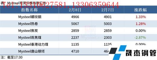◎ 2月8日下午,對山東、山西、河南三省43家無縫厚壁鋼管廠家限產(chǎn)狀態(tài)進行更新,涉及生鐵年產(chǎn)能1.58億。據(jù)調(diào)研了解,目前43家無縫厚壁鋼管廠家高爐產(chǎn)能利用率為75.31%,日均生鐵產(chǎn)量33萬噸。為保證冬奧會期間北京的空氣質(zhì)量,預計未來三天內(nèi)區(qū)域內(nèi)將有11家無縫厚壁鋼管廠家的的燒結(jié)、高爐生產(chǎn)有所調(diào)整,調(diào)整期間影響日均鐵水產(chǎn)量4.56萬噸/日。