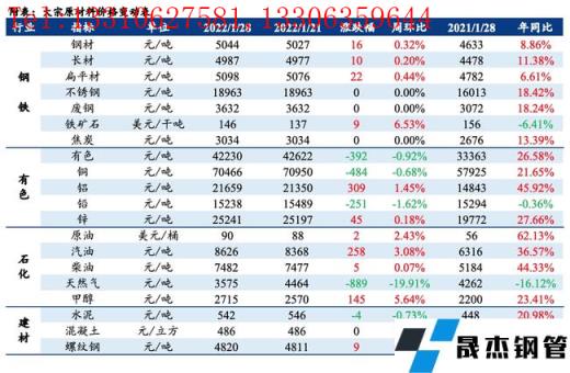 免責聲明:本網站(山東聊城晟杰無縫鋼管廠www.vsocial.cn)刊載的“大宗原材料價格周報(1.24-1.28)”等均源于網絡,版權歸原作者所有,且僅代表原作者觀點,本文所載信息僅供參考。轉載僅為學習與交流之目的,如無意中侵犯您的合法權益,請及時聯系刪除。本網站刊登此篇文章并不意味著本站贊同其觀點或證實其內容的真實性,我們不對其科學性、嚴肅性等作任何形式的保證。如果侵犯了您的版權,請盡快聯系我們予以撤銷,謝謝合作!