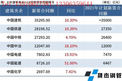 免責聲明:本網站(山東聊城晟杰無縫鋼管廠www.vsocial.cn)刊載的“7家建筑央企2021年新簽合同總額超12萬億元,同比增長12%”等均源于網絡,版權歸原作者所有,且僅代表原作者觀點,本文所載信息僅供參考。轉載僅為學習與交流之目的,如無意中侵犯您的合法權益,請及時聯系刪除。本網站刊登此篇文章并不意味著本站贊同其觀點或證實其內容的真實性,我們不對其科學性、嚴肅性等作任何形式的保證。如果侵犯了您的版權,請盡快聯系我們予以撤銷,謝謝合作!