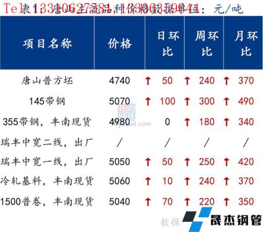 今日唐山管帶價格趨穩(wěn)運(yùn)行,其中355帶鋼穩(wěn),145帶鋼較昨日漲100元/噸,焊管、鍍鋅管價格穩(wěn)。355帶鋼市場價格先漲后跌,較昨日整體趨穩(wěn)運(yùn)行。受今日黑色系期貨沖高回落影響,市場心態(tài)發(fā)生變化,對價格偏觀望,謹(jǐn)慎操作為主,成交清淡。