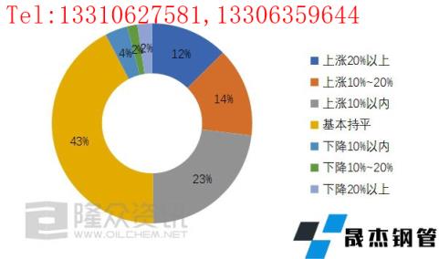 本次調研期間,57%的企業樣本企業庫存與上年度持平,百分比較上年度調研上升了6個點。32%的企業庫存上漲,相比上年度持平;11%的企業庫存下降,同比減少3個百分點。