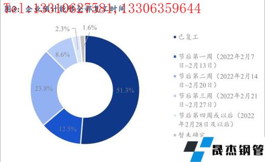 2、對于復工時間的調研發現:今年就地過年員工的比例雖然不及去年同期,但依然處于較高水平,工人返工較為便捷,因此節后企業預計能夠全部復工的時間也較去年大體相當,目前已全面復工樣本企業263家,占比達到51.3%,節后第二周內能夠復工的樣本企業占比高達87.5%。
