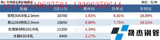 假期期間民營資源到貨并不如預(yù)期,可流通現(xiàn)貨資源偏緊,市場對新一輪下游補(bǔ)庫需求較為看好,疊加原料價(jià)格上漲,高鎳鐵以及304廢不銹鋼價(jià)格均在節(jié)后大幅上漲,高原料帶來的是不銹鋼高成本,給現(xiàn)貨上漲帶來支撐,預(yù)計(jì)本周304現(xiàn)貨價(jià)格震蕩偏強(qiáng)運(yùn)行。
