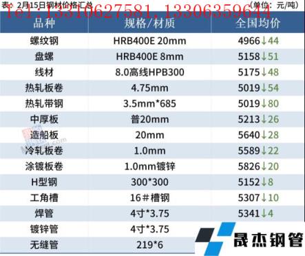 熱軋板卷:2月15日,全國(guó)24個(gè)主要城市4.75mm熱軋板卷均價(jià)5019元/噸,較上個(gè)交易日價(jià)格下跌54元/噸?,F(xiàn)貨市場(chǎng)早盤報(bào)價(jià)小幅走弱,跌后市場(chǎng)成交乏力,加之現(xiàn)貨成交不佳,午后現(xiàn)貨價(jià)格繼續(xù)下跌。從目前情況來(lái)看,前期邏輯低庫(kù)存低供應(yīng)雖然還在,但原料端雙焦和鐵礦的走弱,對(duì)市場(chǎng)的影響均大于基本面影響,導(dǎo)致了現(xiàn)貨回調(diào)。綜合來(lái)看,預(yù)計(jì)16日熱軋板卷價(jià)格或?qū)⑷鮿?shì)震蕩運(yùn)行。