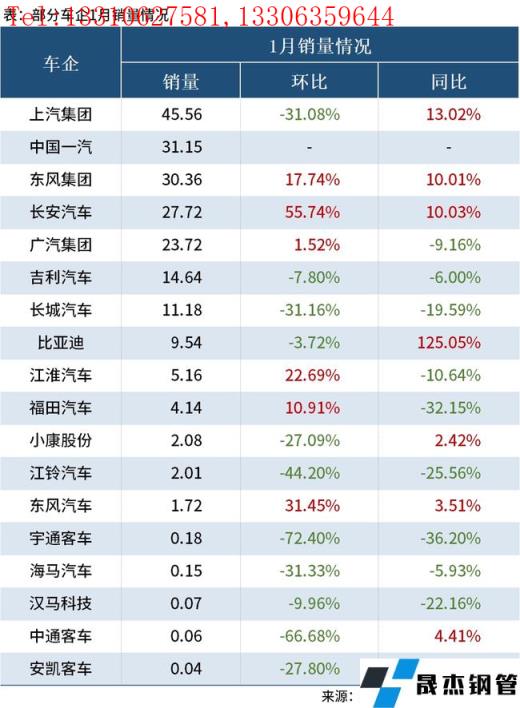 1月我國汽車產銷降幅明顯,多數車企呈現雙位數下跌