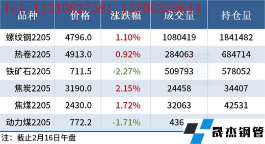 免責聲明:本網站(山東聊城晟杰無縫鋼管廠www.vsocial.cn)刊載的“2022年02月16日午報:鋼價局部反彈,鋼材_無縫鋼管和焦炭期貨上漲”等均源于網絡,版權歸原作者所有,且僅代表原作者觀點,本文所載信息僅供參考。轉載僅為學習與交流之目的,如無意中侵犯您的合法權益,請及時聯系刪除。本網站刊登此篇文章并不意味著本站贊同其觀點或證實其內容的真實性,我們不對其科學性、嚴肅性等作任何形式的保證。如果侵犯了您的版權,請盡快聯系我們予以撤銷,謝謝合作!