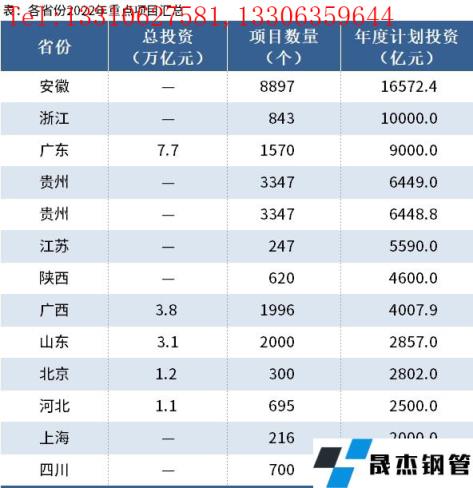 據不完全統計,截至2月16日,廣東、江西、江蘇、北京、上海、貴州、山東、浙江、四川、廣西、陜西、河北、安徽等13個省份發(fā)布了2022年重點項目清單,合計共24778個項目。除四川以外,12省份年度計劃投資額合計超7.28萬億元。