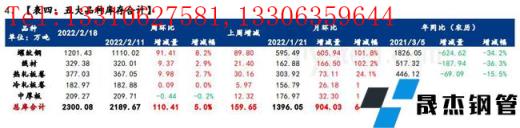 據(jù)統(tǒng)計(jì),本周五大品種庫(kù)存總量為2300.08萬(wàn)噸,環(huán)比上周增加110.41萬(wàn)噸,其中建材庫(kù)存增加100.78萬(wàn)噸,增幅為7.0%;板材庫(kù)存增加9.63萬(wàn)噸,增幅1.3%。上期庫(kù)存總量為2189.67萬(wàn)噸,環(huán)比節(jié)后第一周增加159.65萬(wàn)噸,其中建材庫(kù)存增加111.2萬(wàn)噸,增幅為8.4%;板材庫(kù)存增加48.45萬(wàn)噸,增幅6.8%。