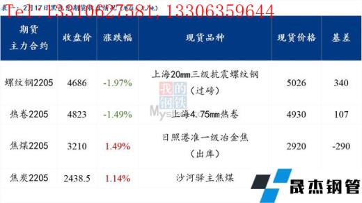 免責聲明:本網站(山東聊城晟杰無縫鋼管廠www.vsocial.cn)刊載的“2022年02月17日日報:鋼材_無縫鋼管價格指數下跌20.19元/噸”等均源于網絡,版權歸原作者所有,且僅代表原作者觀點,本文所載信息僅供參考。轉載僅為學習與交流之目的,如無意中侵犯您的合法權益,請及時聯系刪除。本網站刊登此篇文章并不意味著本站贊同其觀點或證實其內容的真實性,我們不對其科學性、嚴肅性等作任何形式的保證。如果侵犯了您的版權,請盡快聯系我們予以撤銷,謝謝合作!