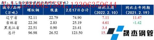 本周東三省建筑厚壁無縫鋼管現貨庫存整體較上周增加15.16萬噸,相比上周37.40%的增速本周明顯放緩,其中螺紋鋼現貨庫存96.98萬噸,線盤26.52萬噸,建材社會庫存總量為123.50萬噸,較上周增15.16萬噸,增幅13.99%。相比春節期間累庫較多,本周東北區域內建材現貨增加不多,各市場倉庫到貨一般。