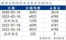 根據(jù)數(shù)據(jù),截至2月18日,螺紋鋼全國(guó)均價(jià)4922元/噸,較上月19日上漲了232元/噸,較去年同期上漲了1229元/噸;石家莊地區(qū)建筑厚壁無(wú)縫鋼管價(jià)格在4790元/噸左右,較上月19日上漲了9元/噸,較春節(jié)后高點(diǎn)跌了230元/噸,當(dāng)前價(jià)格較去年同期上漲1280元/噸。當(dāng)前市場(chǎng)價(jià)格遠(yuǎn)高于去年同期水平,但春節(jié)后價(jià)格上漲、下跌均快于全國(guó)平均水平。